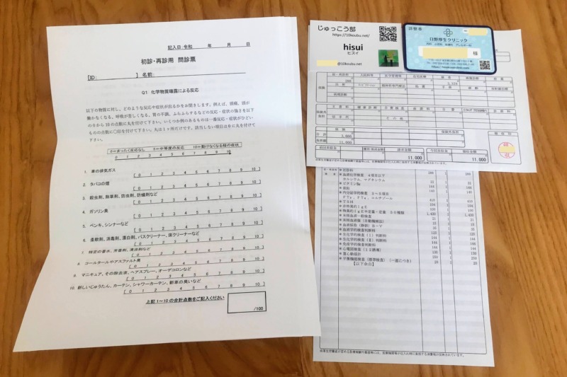 問診票で回答した点数的に化学物質過敏症と判断される点数を上回っているとのことで、化学物質過敏症と診断された。